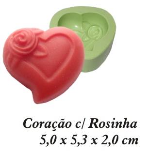 Molde Silicone 1 Cavidade CORAÇÃO COM ROSINHACódigo: 0103 Molde de silicone para preparo de sabonete e velas. Medidas aproximadas do produto final: 5,0 cm comp. x 5,3 cm.larg. x 2,0 cm alt/esp. Informações: Recomendações: Antes do primeiro uso, retire-o da embalagem, lave com água e detergente neutro e deixe secar naturalmente, longe do sol ou fonte de calor por no mínimo 2 horas. Armazene os moldes limpos em local fechado, fresco e seco, sem sobreposição.