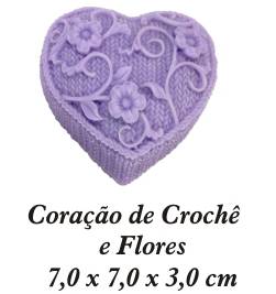Molde Silicone 1 Cavidade CORAÇÃO CROCHÊ E FLORESCódigo: 0138 Molde de silicone para preparo de sabonete e velas. Medidas aproximadas do produto final: comprimento 7,0cm, largura 7,0cm, altura/espessura 3,0cm. Informações: Recomendações: Antes do primeiro uso, retire-o da embalagem, lave com água e detergente neutro e deixe secar naturalmente, longe do sol ou fonte de calor por no mínimo 2 horas. Armazene os moldes limpos em local fechado, fresco e seco, sem sobreposição.